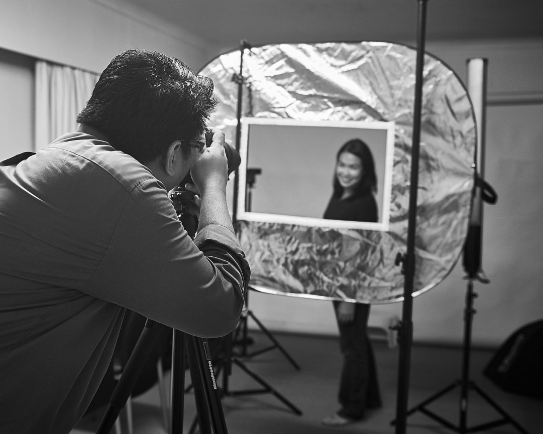 We only use professional cameras and lighting equipment. A white backdrop is usually used for headshots, but can be changed to suit the client’s preference, pending availability. During the shoot within our studio we will have a monitor for client proofing.